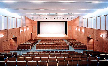 300席の固定席をもつ4、5階吹き抜けのスロープ式ホールです。音響、照明、スクリーンなどの舞台機構を備え、講演会や発表会、ミニコンサートに手ごろな規模となっております。