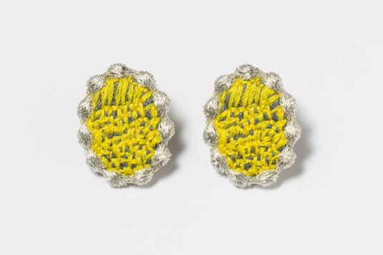 デザイナー・ヤマサキチヨ、刺繍職人・ウラアキヒコのデザインユニットに、46年間培ってきた山崎マークの刺繍加工技術が加わり、今までにない個性的で身につけるわくわくを感じられる刺繍ピアス・イヤリングが完成しました。