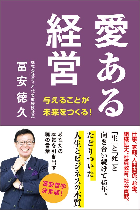 「100年残る本を作る」をミッションに掲げる出版社(株)Wonder Note(福岡県福岡市、代表取締役 青木一弘)は、2024年11月15日(金)に刊行予定の『愛ある経営 与えることが未来をつくる!』の発売に先駆け、2024年10月25日(金)よりAmazon予約を開始します。著者は不透明な体質だった葬儀業界に「適正価格」を導入し、『日本で一番「ありがとう」と言われる葬儀社』を目指している株式会社ティア(以下、ティア) 代表取締役社長 冨安徳久氏。本書は、創業から9年で上場し、2015年には売上高100億円を達成し、今も驚異的な成長を遂げているティアの経営哲学と教育手法を凝縮したものです。