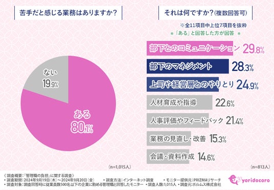 今回の調査で、管理職の業務負担や業務の1つとなる社員マネジメントに関する悩みが明らかになりました。