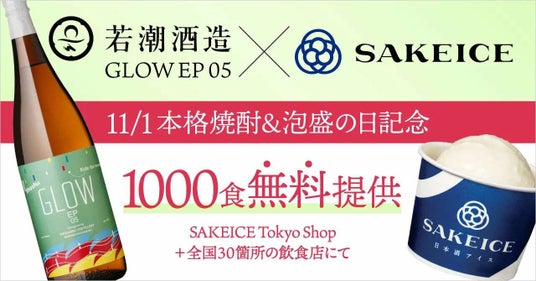 11/1の本格焼酎&泡盛の日を記念して、若潮酒造株式会社とSAKEICE(株式会社えだまめ)がコラボレーションします。本格焼酎をもっと多くの方々に楽しんでもらうため、若潮酒造の人気焼酎「GLOW EP05」を使った特製のアルコール入りアイス(以下『GLOW EP05 SAKEICE』)が誕生しました。11月1日、SAKEICE Tokyo Shop(東京駅)と全国の焼酎の銘店30店舗にご協力いただき、この特製アイスを1000食限定で無料提供いたします。