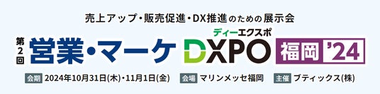 「第2回 営業・マーケDXPO福岡’24」は、6つの展示会から構成され、営業・マーケティング部門の売上アップや販売促進を支援するIT製品が一堂に集まる展示会です。当社は、「マーケティングを、もっと身近に。」という当社のミッションを推進する活動の一環として「第2回 営業・マーケDXPO福岡’24」内の「営業支援システム展」に「Kairos3」を出展する運びとなりました。