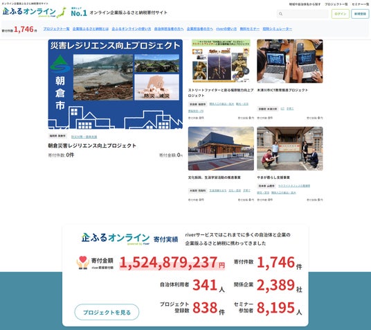 自治体が寄附募集プロジェクトの魅力を寄附企業に効果的に伝え、企業が求める寄附募集プロジェクトを網羅的に探すことができる、、オンライン企業版ふるさと納税寄付サービスです。