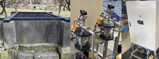 また今回発生させた雲海には熊本城内にある飯田丸古井戸の水を一部使用しました。いけうちでは20年以上に渡り、産業界での使用水のろ過技術について研究を続けてきました。今回はこれまで培った技術を元にろ過装置(オートストレーナー、セラミックフィルター)を設置し、飯田丸古井戸の水から一般細菌や汚れを除去した飲適可能な水を生成、雲海発生用供給水の一部として使用しました。歴史的価値のある飯田丸古井戸の水を現代技術で雲海として蘇らせる取り組みは、今回の雲上の熊本城にふさわしい物となりました。