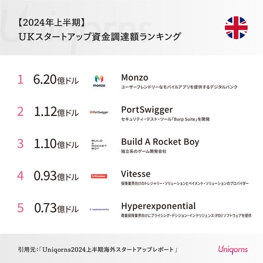 株式会社EmolutionCreative国内最大級のスタートアップメディア「Uniqorns(ユニコーンズ)」が2024年上半期のUKスタートアップ資金調達状況をランキング形式で発表