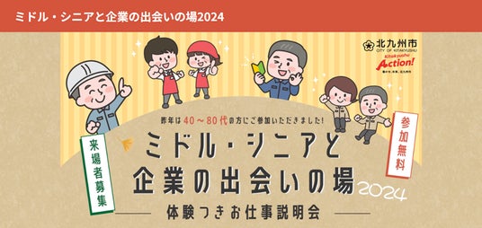 福岡県北九州市(北九州市役所)ミドル・シニアと企業の出会いの場2024- 北九州市主催 体験つきお仕事説明会を11月12日、13日に開催します!事前予約は11月11日まで!