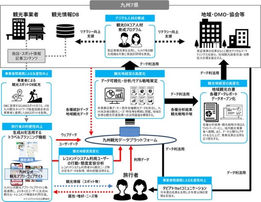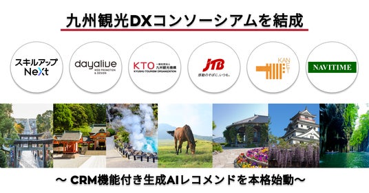 一般社団法人九州観光機構、株式会社JTB、JTB九州観光ネットワーク推進協議会、株式会社ナビタイムジャパン、株式会社スキルアップNeXt、株式会社デイアライブは、九州観光DXコンソーシアムを結成し、九州全域の観光活性化を目指す「わくわく観光プロジェクト~九州DXアイランド構想~」を実施いたします。本取り組みは、観光庁 令和6年度「観光DXによる地域経済活性化に関する先進的な観光地の創出に向けた実証事業」の採択を受けて実施するものです。