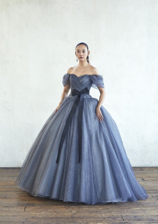 人気オリジナルドレスに、きらめきを加え衣装スペシャリストチーム全店アンケートを募り、人気の3カラーで製作。ラメのきらめきがエレガントな印象のワインレッド。誰とも被らない感度の高い花嫁さまに人気のくすみグリーン。花嫁さまに絶大な人気を誇るグレー。濃淡が大きく異なるカラーを重ねることで生み出される透け感が印象的な一着。