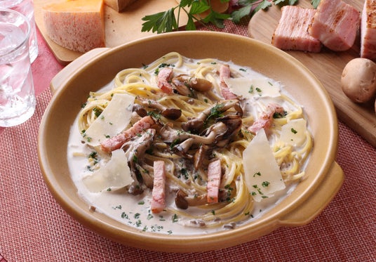旬のきのこを使用した「きのこベーコンと5種チーズのポルチーニクリームソース」
