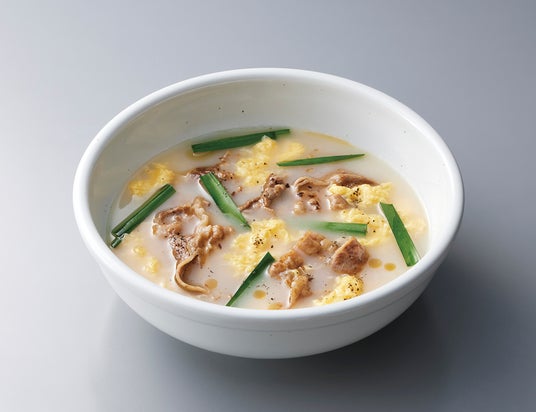 旨味の強い牛だしをベースに、香ばしく焼き上げた牛肉とふわふわ玉子を入れた絶品スープです。