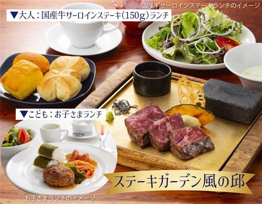 昼食は、ボリューム満点な「牛ひつまぶしと韓国冷麺(ハーフ)のセット」または、肉汁たっぷりの「国産牛サーロインステーキ(150g)ランチ」からお選びいただけます。こどもの旅行代金のお食事は、ハンバーグとおにぎりがセットになったお子さまランチをご用意しています。
