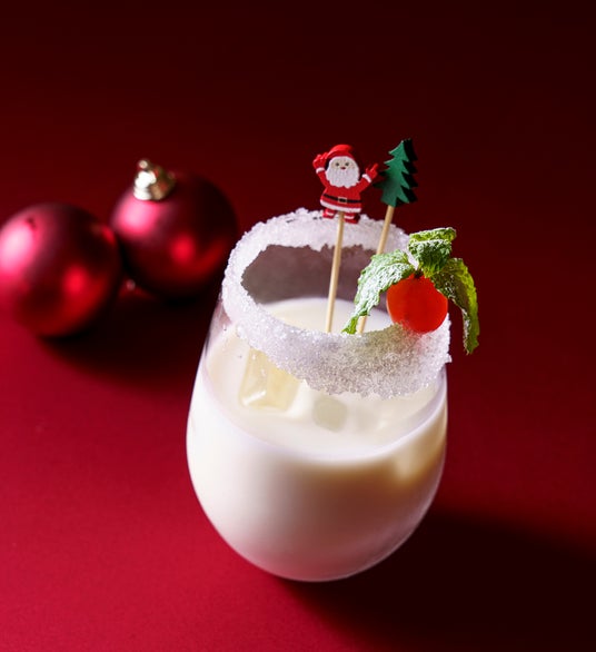 ピーチツリーリキュールの甘く芳醇な香りとヨーグルトのクリーミーなコクがマッチし、フルーティーな爽やかさが全体を引き立てるカクテルです。口当たりが滑らかで、可愛らしさと甘めの風味がより特別なホリデーシーズンを彩ります。