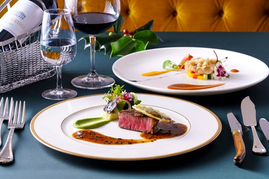 北海道産花咲蟹や雲丹といったこの時季ならではの贅を尽くした食材を使用したフルコーススペシャルディナーをご用意。王道のフレンチで構成されたメニューは贅沢で上品な味わいを提供し、特別なひとときを演出します。メインディッシュの「佐賀牛フィレ肉のグリエ 鴨フォアグラとモリーユ茸のラビオリ」では、柔らかくジューシーな佐賀牛フィレ肉を香ばしくグリルし、濃厚な鴨フォアグラと香り高いモリーユ茸を詰めたラビオリを添えました。黒トリュフの香るヴィンテージマデラソースの深いコクと芳醇な香りとともにお楽しみください。
