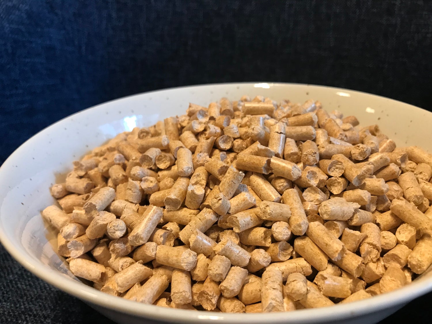 「ALKU(アルク)」の燃料である木質ペレット。間伐材などから製造される。温室効果ガスの排出量と吸収量が等しい「カーボンニュートラル」な原料としてSDGsの観点からも注目されている。
