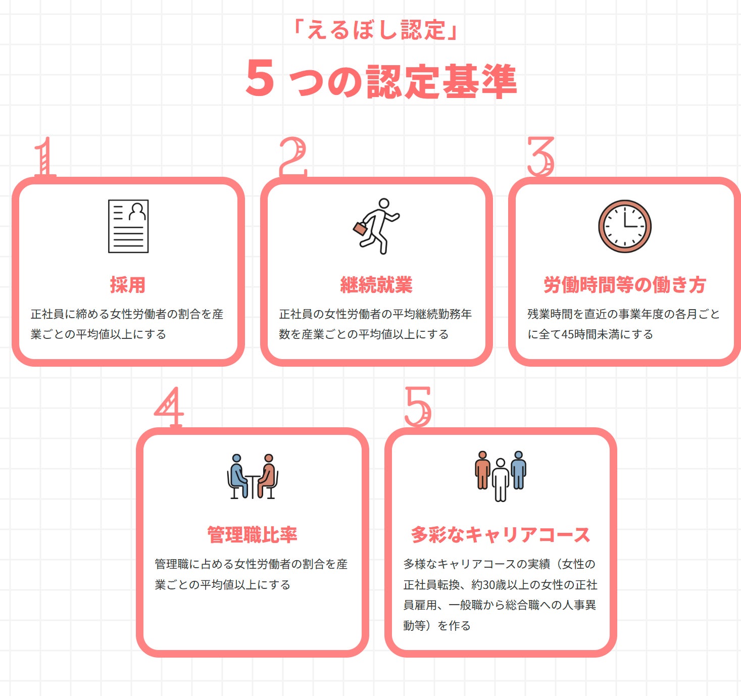 「えるぼし認定」とは「女性活躍」を推進している企業を対象に、厚生労働大臣より認定を受ける制度です。