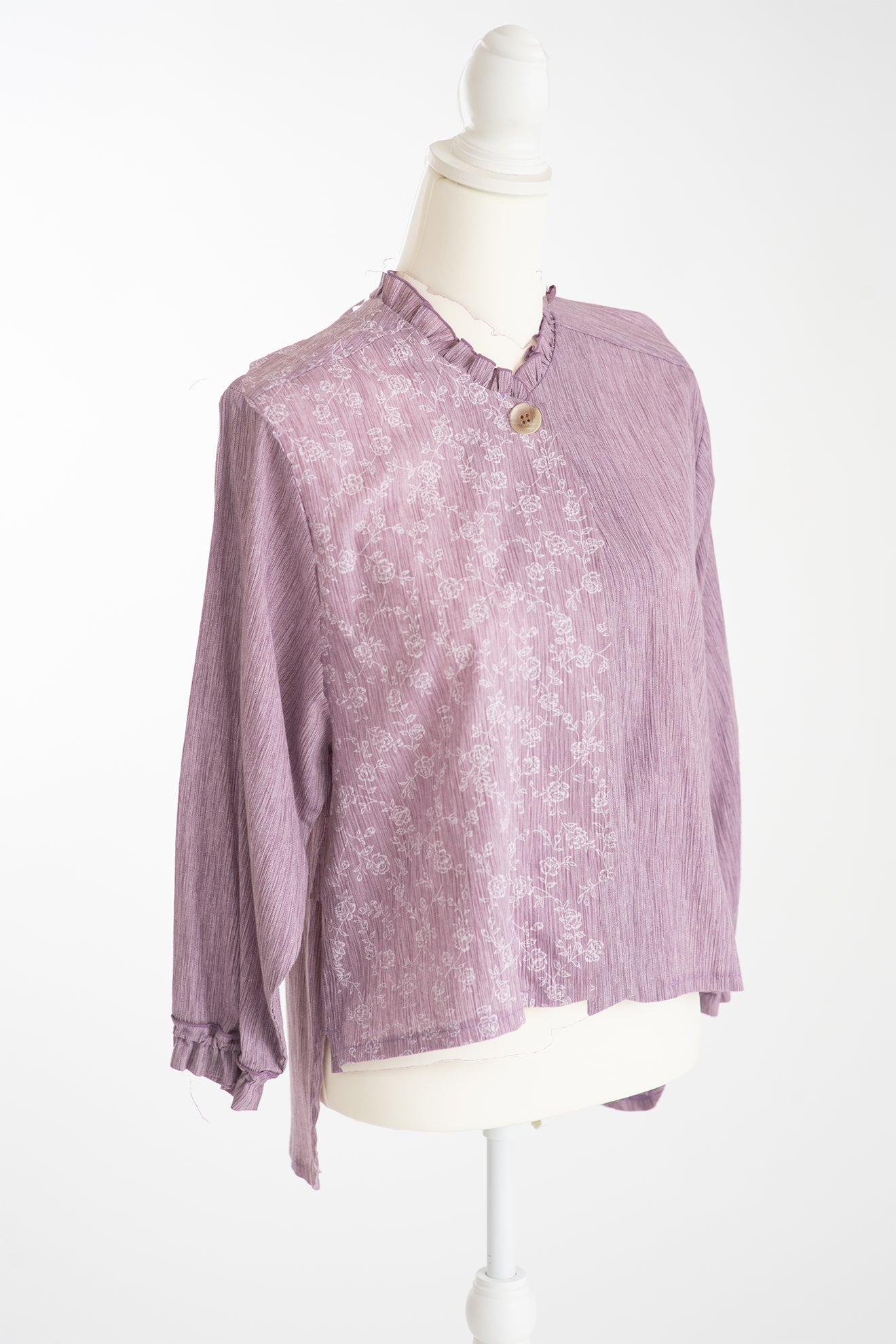 とにかく未経験の分野なので、すべてが大変だったのですが、言った以上は前に進まなければいけないと思い、まず頼ったのが地元の湖南市商工会でした。初めて相談に行き、この事業のことを伝える中で、高島市商工会につないでいただき、特産の綿織物「高島ちぢみ」をつくる事業者の方を紹介していただきました。もともと綿の花柄のブラウスを作る計画だったので、上質な素材を生地に使えることになりました。