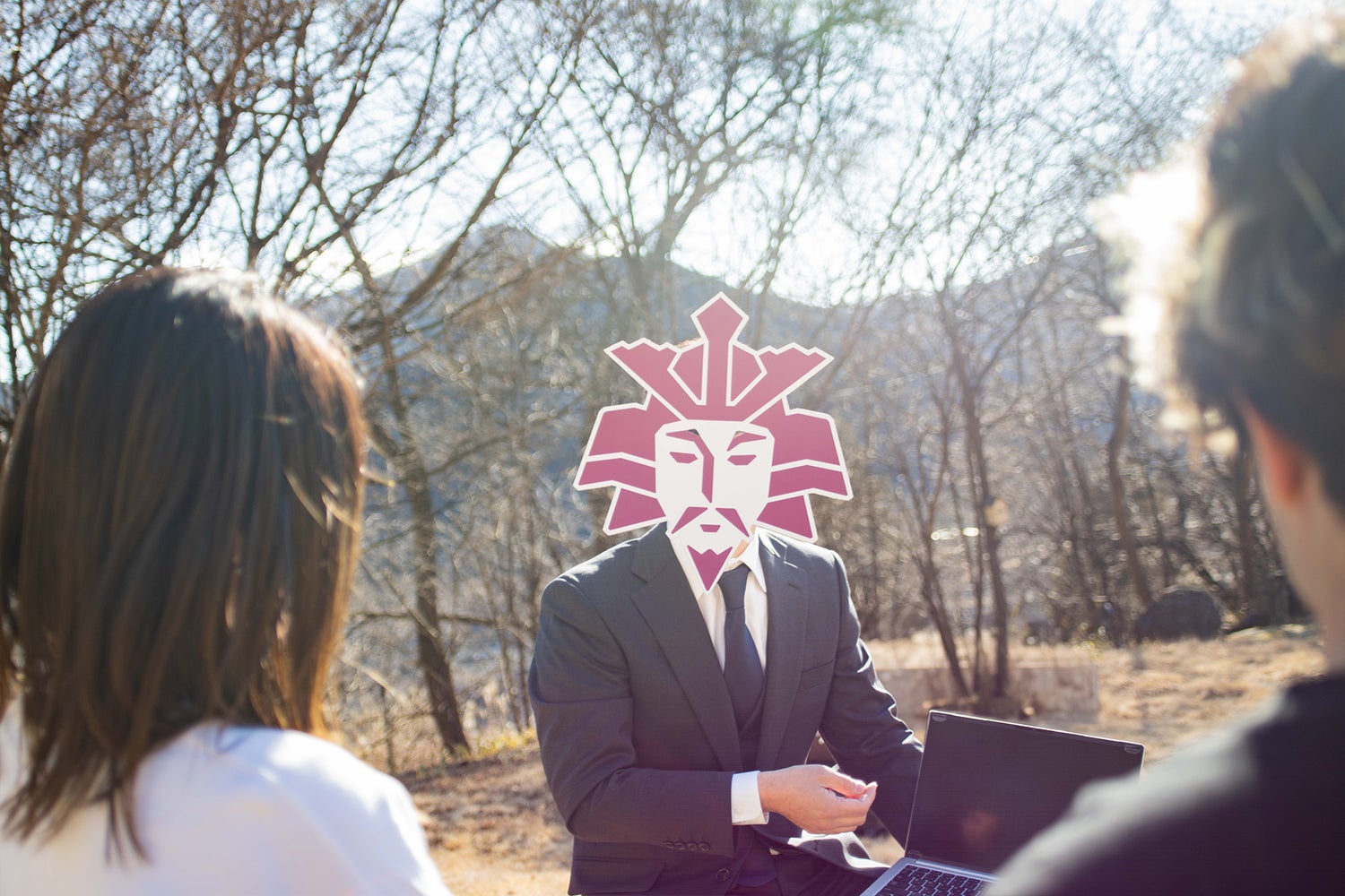しかしながら独立起業をするにあたり、自分が社長になったら今後、広報などでどうしても人前やメディアに出ていかなければならない局面があるように思いました。でも、顔を出すのは自分の中でやっぱり違う。正直、それがひっかかって独立起業をやはり断念しようかなと思った瞬間もあったのですが、そんな時にふと思い出したのが、ロックバンド「BEAT CRUSADERS」です。お面をかぶって演奏する姿を思い出し、「そうかこの手があったか!」と雷に打たれたような衝撃でした。