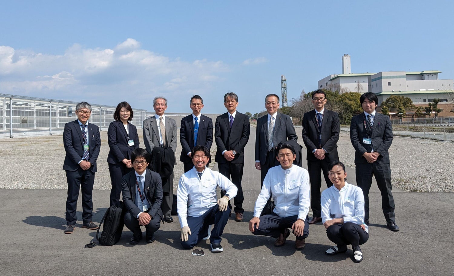 2024年3月 スマートガーデンお披露目の際に佐賀市バイオマス課の皆さま(当時)と花王メンバー。前列左から前田様、野口、土居、稲葉。