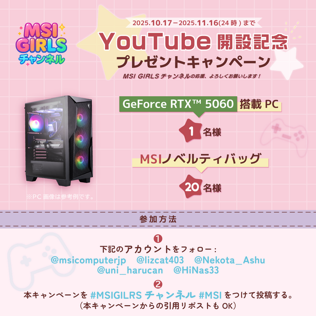 MSI GIRLSチャンネル開設記念プレゼントキャンペーン開催!