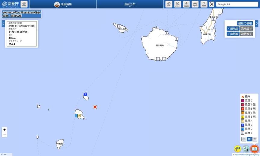 震源はトカラ列島近海、十島村諏訪之瀬島で地震相次ぐ