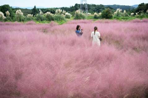 幻想的な「ピンクの世界」――イネ科の多年草、ミューレンベルギアが見頃 鹿屋市の「ダマスクの風」 10月いっぱい