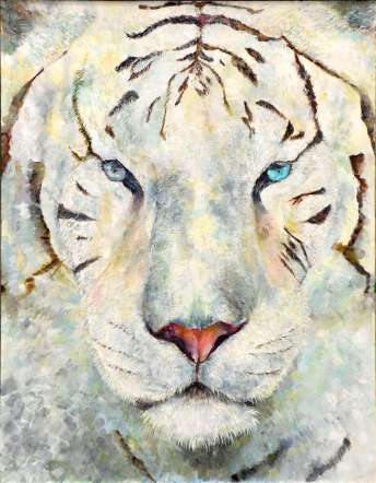 鹿児島県内高校生で初めて二科展・絵画部に入選 初出品の松陽2年・是枝輝星さん ホワイトタイガーを50号キャンバス全体に描いた「孤高」