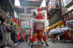横浜中華街で双十節の祝賀行事 獅子舞や太鼓、沿道に熱気