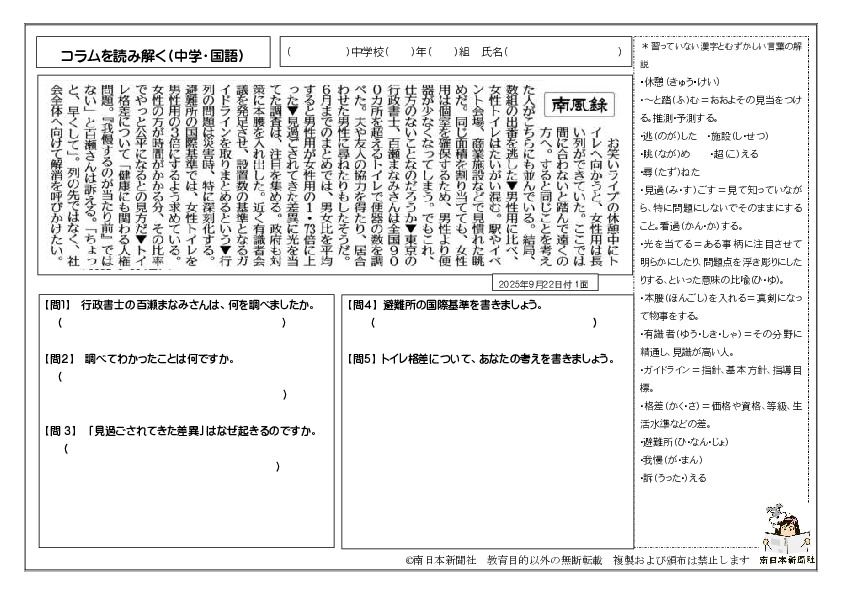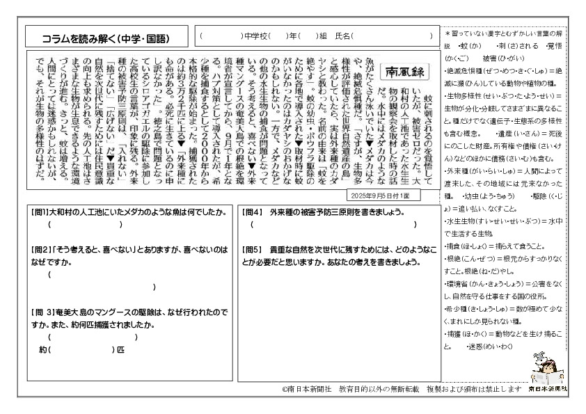 南日本新聞には、こども新聞をはじめ子どもたちの国語力・読解力・作文力などの学力向上をサポートする紙面が満載です。