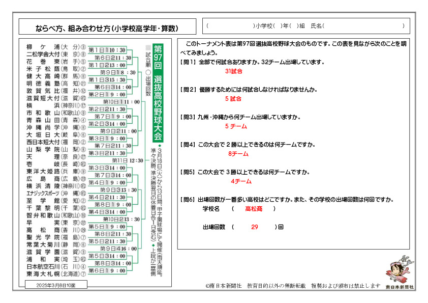 選抜高校野球トーナメント表
