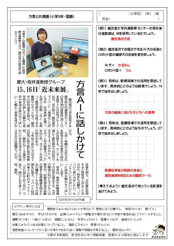 南日本新聞には、こども新聞をはじめ子どもたちの国語力・読解力・作文力などの学力向上をサポートする紙面が満載です。