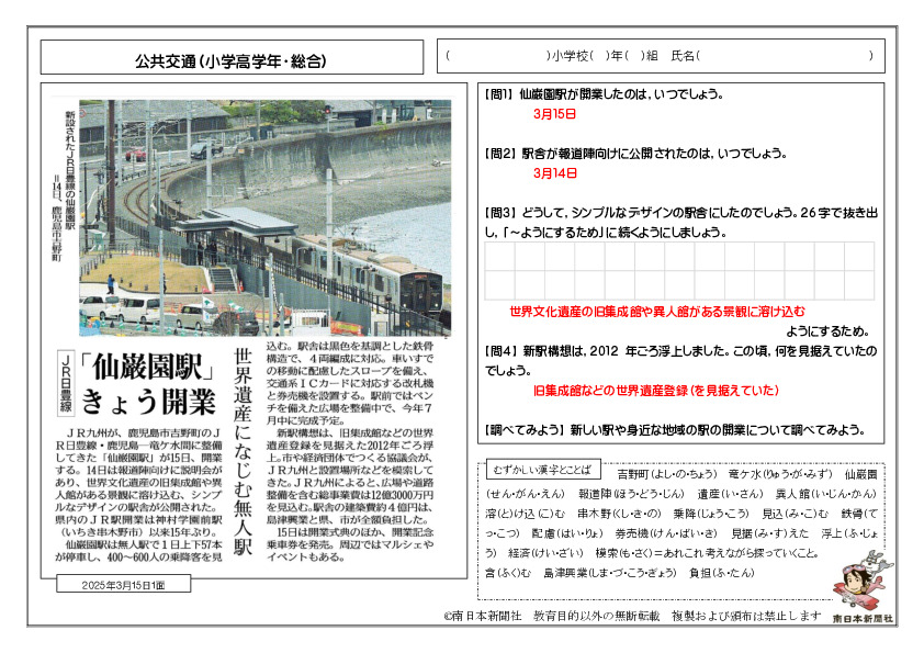 南日本新聞には、こども新聞をはじめ子どもたちの国語力・読解力・作文力などの学力向上をサポートする紙面が満載です。