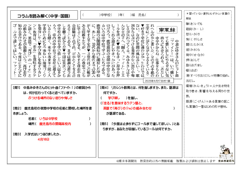 南日本新聞には、こども新聞をはじめ子どもたちの国語力・読解力・作文力などの学力向上をサポートする紙面が満載です。