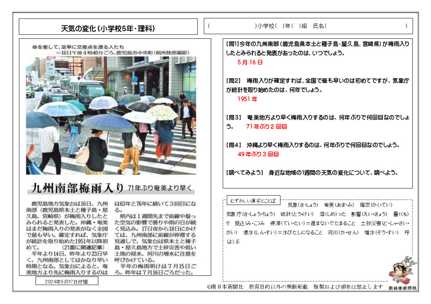 南日本新聞には、こども新聞をはじめ子どもたちの国語力・読解力・作文力などの学力向上をサポートする紙面が満載です。