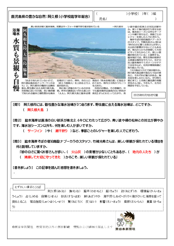 南日本新聞には、こども新聞をはじめ子どもたちの国語力・読解力・作文力などの学力向上をサポートする紙面が満載です。