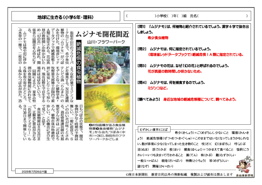 南日本新聞には、こども新聞をはじめ子どもたちの国語力・読解力・作文力などの学力向上をサポートする紙面が満載です。