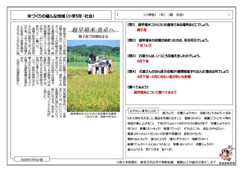 南日本新聞には、こども新聞をはじめ子どもたちの国語力・読解力・作文力などの学力向上をサポートする紙面が満載です。