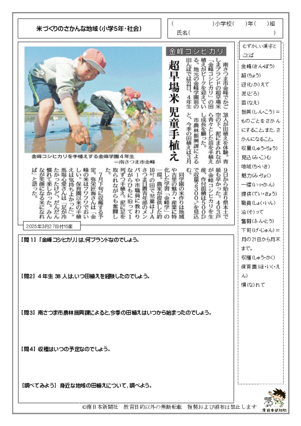 南日本新聞には、こども新聞をはじめ子どもたちの国語力・読解力・作文力などの学力向上をサポートする紙面が満載です。