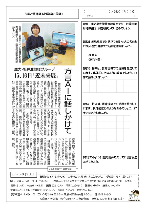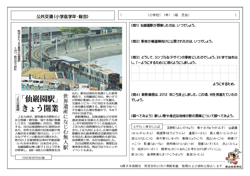 南日本新聞には、こども新聞をはじめ子どもたちの国語力・読解力・作文力などの学力向上をサポートする紙面が満載です。