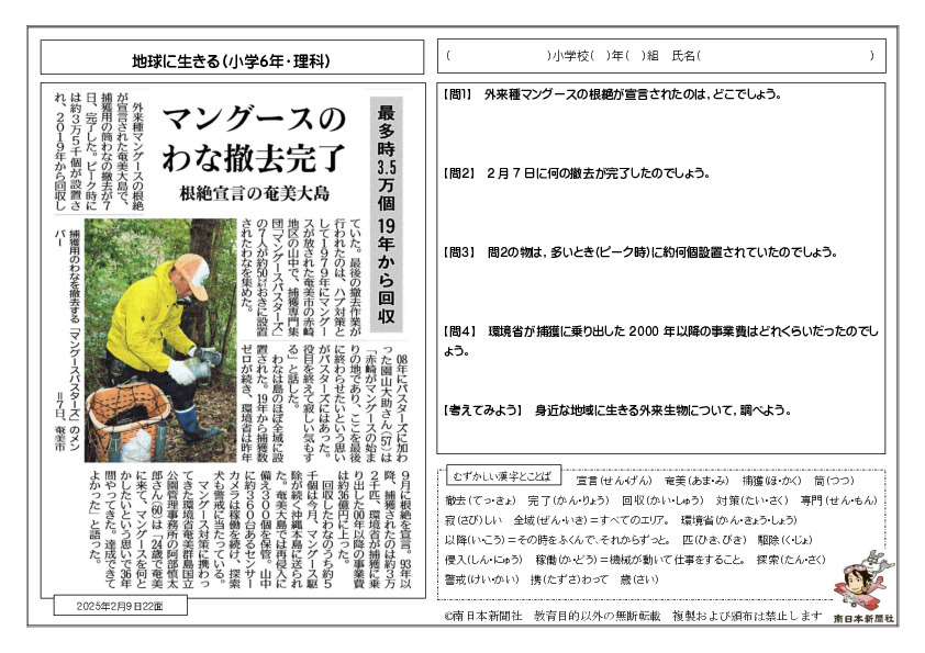 南日本新聞には、こども新聞をはじめ子どもたちの国語力・読解力・作文力などの学力向上をサポートする紙面が満載です。