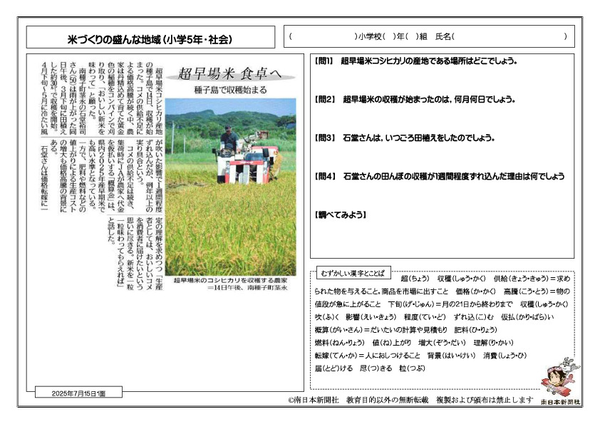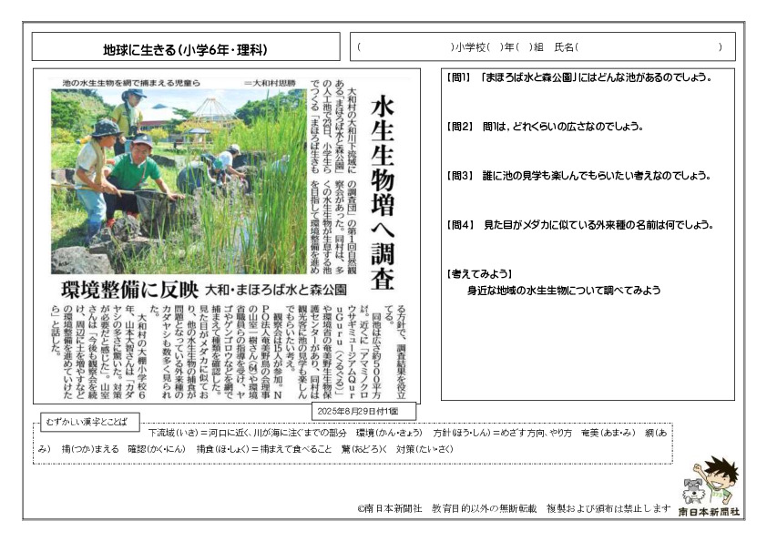 南日本新聞には、こども新聞をはじめ子どもたちの国語力・読解力・作文力などの学力向上をサポートする紙面が満載です。